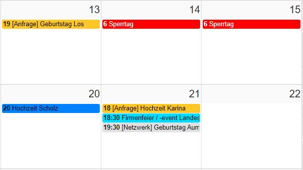 Um einen schnellen Überblick über Deine Aufträge und Anfragen zu bekommen, sind die verschiedenen Einträge im Kalender farblich hinterlegt. So kannst Du auf einen Blick unterscheiden, um welche Art von Auftrag es sich handelt.